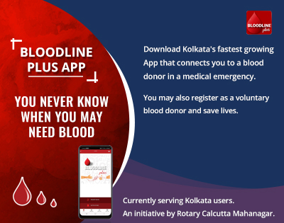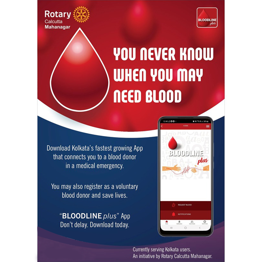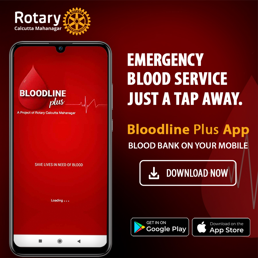 Bloodline plus App by Rotary Club of Calcutta Mahanagar was conceptualised by Shekhar Mehta - Rotary International President 21-22. In his journey of service to mankind, he realised that with the help of technology, Rotary could help persons seeking blood in times of a medical emergency when blood may not be available at local blood banks. Bloodline plus App maintains a database of registered voluntary blood donors and sends them notifications when an urgent need for blood arises. The App does not charge anything to the donor or to the donee and this is purely a free service to help patients who do not find the required blood in blood banks in an emergency.